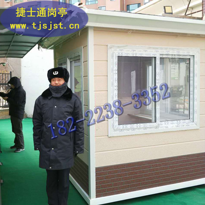 外面天气寒冷,保安需要一款合适有保温的保安岗亭,捷士通岗亭厂家专业生产有双层保温的金属雕花板保安岗亭。