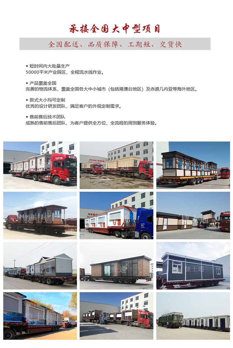 今天给您做以上的解答,岗亭是可以做长图运输的,短到国内,长到出口,都是完全可以的,因为岗亭是方钢龙骨焊接,完全可以承受长图的颠簸而且不变形,现在说的是捷士通的岗亭,因为这些都是方钢的尺寸厚度有一定的关系,别的不敢保证,但是保证捷士通的可以长图运输,下面说岗亭为什么不扎绳子,因为在下边角会用焊机进行焊接,也就是焊接到车上,到了目的地后,会切割下来,这样即安全,又不能扎绳子(绳子并不是最最牢固的存在),这就是为什么可以在车上安稳的运输的主要原因